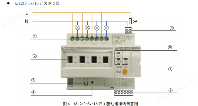4.2電氣接線圖 ? ASL220Z-Sx/16開(kāi)關(guān)驅(qū)動(dòng)器(同 ASL220-Sx/16 開(kāi)關(guān)驅(qū)動(dòng)器)